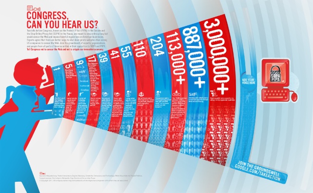 Намагання посилити антипіратське законодавство у США викликало масові протести. Провідні інтернет-кампанії та чимало впливових медіа виступили проти. Вікіпедія на знак протесту не працювала один день. В результаті ініціатори законопроекту відмовилися від нього